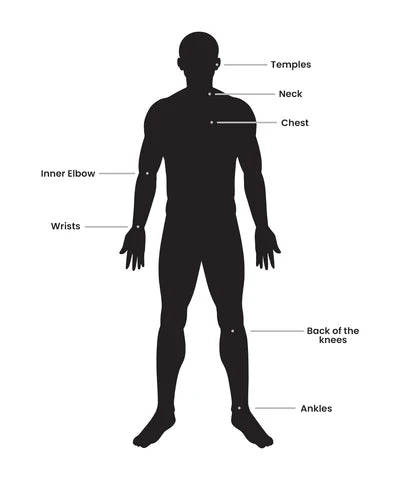 After a good shower, apply our Roll‑on/Attar on your pulse points. These pulse points are:
